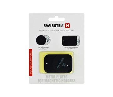 Set kovových štítků k magnetickým držákům. Balení obsahuje jeden magnetický plíšek pro vložení pod pouzdro a jeden plíšek pro nalepení na telefon. Baleno v blistru