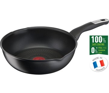 Víceúčelová pánev Tefal má extra hluboké dno, dvě nálevky. 100% bezpečný nepřilnavý povrch • Nejlepší nepřilnavý povrch Titanium Anti-Scratch s úpravou proti poškrábání • Silné dno Thermo-Fusion™ • Technologie Thermo-Signal™ • Kompatibilní se všemi typy sporáků, včetně indukce • Vyrobeno ve Francii