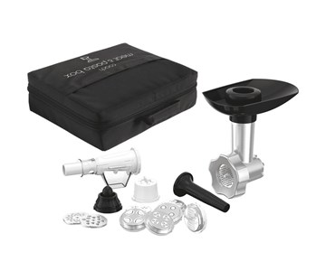 Příslušenství, které je součástí balení: Úložné pouzdro. Mlýnek na maso. Výrobník na masové kuličky a klobásy. Nástavec na pyré. Výrobník těstovin. Tvarovač sušenek a cukroví. Čisticí štěteček. Pěchovadlo. Přístup k aplikaci Tefal.