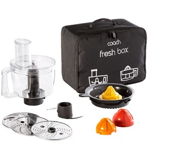 Sada příslušenství pro kuchyňský robot Tefal Coach : 5 funkcí, krouhání, krájení, sekání, strouhání, lisování citrusů, aplikace s recepty, snadná instalace. CO JE SOUČÁSTÍ BALENÍ: Food processor, 3 kotouče na strouhání a krájení, lis na citrusy se 3 nástavci, pouzdro, přístup k aplikaci Tefal