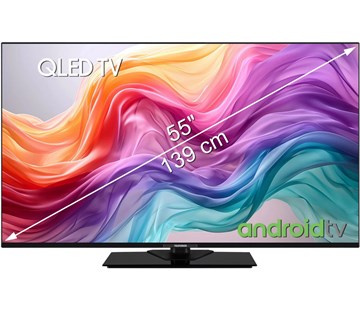 QLED televize • úhlopříčka 139 cm (55") • 4K Ultra HD rozlišení (3840 × 2160 px) • HDR • tunery DVB-T2 (H.265/HEVC), DVB-C, DVB-S2 • LAN • Wi-Fi • Bluetooth • Chromecast • zvukový výkon 2× 10 W • Dolby Atmos, DTS Virtual X, DTS X • HbbTV • podpora aplikací KODI, O2 TV a dalších • 3× HDMI • 2× USB • CI+ • operační systém Android TV
