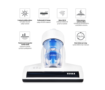 | Používání ručního vysavače Tesla LifeStar UV550 je zároveň velmi bezpečné. UV-C lampa se spustí pouze při kontaktu s čištěným povrchem. Vybírat můžete celkem ze 3 provozních režimů. Veškeré nečistoty jsou shromažďovány do speciálního zásobníku s kapacitou 500 ml. Vystačíte si tak zcela bez papírových sáčků. Zásobník stačí vysypat a následně umýt pod tekoucí vodou. |  |