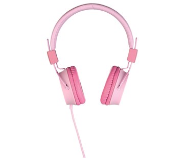 náhlavní sluchátka pro děti, polstrovaný, nastavitelný hlavový most, naklápěcí náušníky a nízká hmotnost, jednostranně vedený kabel s textilním opletením, konektor s rozdvojkou (sdílení přehrávače), skládací konstrukce, citlivost 82 +/-3 dB, impedance 32 ohmů, jack 3,5 mm stereo, kabel 1,2 m, růžová