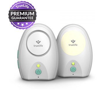 Digitální audio chůvička s dobíjecími jednotkami, jednosměrná komunikace, dosah 700 m, klipsy na opasek či zavěšení, detekce slabého signálu, detekce slabé baterie, noční světýlko, USB-C napájení, regulace hlasitosti, barva: bílá/zelená. TrueLife Premium Guarantee.