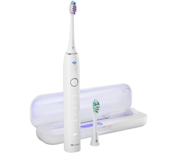Sonický kartáček TrueLife SonicBrush Clean70 UV, výkon až 90 000 pohybů za minutu, tlakový senzor SmartPressure®, technologie SonicTrue®, dobíjecí pouzdro s UV sterilizací, baterie až 70 dní, 5 režimů čištění, 2 hlavice v balení, časovač, paměť, USB-C.