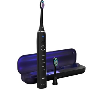 Sonický kartáček TrueLife SonicBrush Clean70 UV Black, výkon až 90 000 pohybů za minutu, tlakový senzor SmartPressure®, technologie SonicTrue®, dobíjecí pouzdro s UV sterilizací, baterie až 70 dní, 5 režimů čištění, 2 hlavice v balení, časovač, paměť, USB-C.