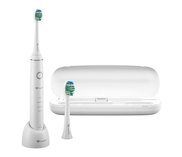 | SonicBrush Compact v sobě má 4 režimy čištění, které se komplexně postarají o vaše ústa. Režim Clean je nejběžnější a hodí se pro každodenní používání. Citlivé zuby a dásně můžete s klidem svěřit režimu Sensitive. Ke krásnému bílému úsměvu vám pomůže režim White a příjemnou masáž dásní zajistí režim Massage. Při každém zvoleném režimu čištění si můžete být jisti, že vaše zuby i dásně dostávají tu nejlepší péči. Jemné vibrace nedají šanci zubnímu plaku, pigmentovým skvrnám ani bakteriím. Zároveň je tato technologie v porovnání s rotačními kartáčky šetrnější k zubní sklovině. Kartáček zároveň víří pastu s vodou, vhání je do mezizubních prostor a tím je pomáhá čistit. |  |
