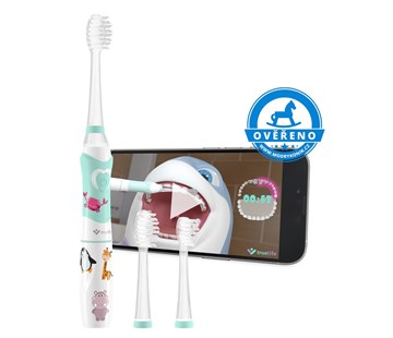 | Sonická technologie SonicTrue šetrně odstraní zbytky jídel a zubní plak. Technologie funguje na principu jemných vibrací a dosahuje intenzity až 48 000 pohybů za minutu. Postará se tedy o důkladné vyčištění všech zubů a zároveň zbytečně nezatěžuje citlivé dásně a zubní sklovinu. Výrobce připravil také výukovou video animaci, kterou můžete dětem pustit na mobilním telefonu nebo tabletu. |