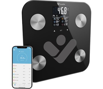 Osobní diagnostická bluetooth váha, měření pomocí bioelektrické impedanční analýzy, 19 měřitelných indexů těla, barevný LCD displej, až 8 uživatelů, párování váhy s mobilní aplikací pomocí bluetooth, kompatibilita s iOS a Android, synchronizace s aplikacemi Apple HealthKit, Google Fit, Fitbit