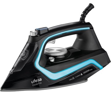 napařovací žehlička • maximální příkon 2600 W • plynulý výstup páry 35 g/min • parní ráz 180 g • kapacita nádržky na vodu 280 ml • délka přívodního kabelu 1,9 m • keramická žehlicí plocha GlidePro • systém proti odkapávání • systém ochrany proti vodnímu kameni • suché žehlení • vertikální žehlení • funkce rozprašování vody