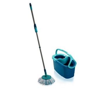 Sada inovovaného třásňového rotačního mopu CLEAN TWIST DISC a vědra značky Leifheit, perfektní pro čištění dlaždic a kamenných podlah, plně pohyblivý mop, optimalozovaný odstředivý mechanismus pro tiché ždímání, flexibilní rotační kloub (52101)