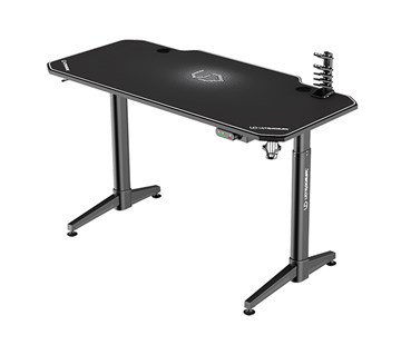 ULTRADESK Herní stůl LEVEL WHITE, 140x66cm, 72-124cm, elektricky nastavitelná výška, s XXL podložkou pod myš, držák sluchátek i ná