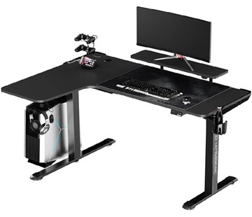 Herní stůl;rohový;Elektrické nastavení výšky(75-122cm);RGB LED podsvícení-14 módů;Inteligentní ovládací panel s USB porty;Vysoce odolná kovová konstrukce;police na monitor;držák na sluchátka,držák nápojů,kovová police,XL podložka;Nastavitelné nožičky;Prvotřídní elektrická ochrana;Dva výkonné motory