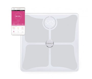UMAX Smart Scale US10C je chytrá váha nové generace,která využívá pokročilou technologii pro sledování hmotnosti a dalších tělesných parametrů.Smart Scale analyzuje tělesné složení až 14 různých parametrů např. tělesný tuk,kosterní svaly,viscerální tuk,objem vody,proteiny,metabolický věk nebo BMI.