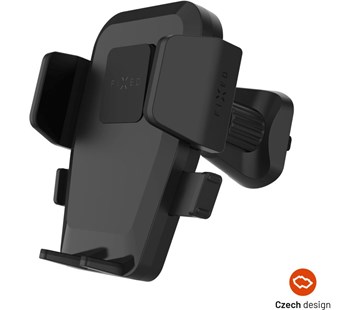 Univerzální držák do auta FIXED Iconiq Lock s rychloupínacím systémem Push and grip nabízí bezpečné a jednoduché uchycení telefonu, které zvládnete jednou rukou. Držák je kompletně vyvíjený v České republice a nabízí tichý a plynulý mechanismus v kombinaci s minimalistickým funkčním designem. Telefon stačí lehce přitisknout na plochu držáku a boční kleště se automaticky přizpůsobí velikosti telefonu do šířky až 8,3 cm. Jediným stiskem se telefon stejně rychle uvolní.