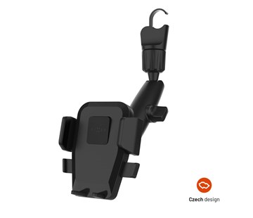 univerzální držák telefonu na zpětné zrcátko • vlastní design vyvinutý v České republice • pro telefony o šířce 5,3 cm - 8,3 cm (uhlopříčka až 6,8") • rychloupínací systém Push and grip pro bezpečné uchycení telefonu • tiché a plynulé ovládání držáku • snadné ovládání jednou rukou • silikonové prvky pro ochranu telefonu • možnost umístění na zpětné zrcátko či opěrku hlavy • stabilní uchycení pomocí háčku a utahovacího mechanismu • uvolňování či utahování kloubů nastavitelné o 1,3 cm - 3,3 cm • 360° otočný kloub pro nastavení ideálního úhlu • odnímatelné úchyty pro nabíjecí kabel na zadní straně držáku • ponechává volný přístup k nabíjecímu konektoru • rozměry: 105 x 100 x 50 mm • váha: 72 g