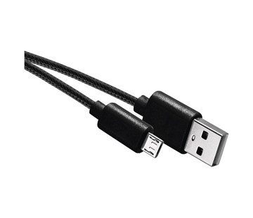 konektory: A vidlice – micro B vidlice, USB verze: 2.0, délka: 2 m, použití: nabíjení/data, materiál: PVC + textil, barva: černá, prodejní obal: 1 ks, krabička, maximální nabíjecí proud: 2 A, rychlost přenosu dat: 480 Mbit/s (High Speed), záruční doba: 2 roky