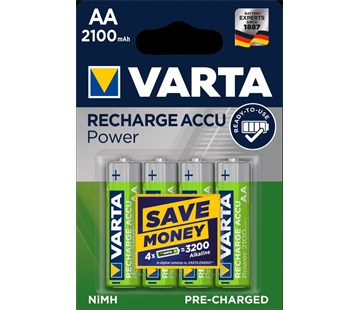 Kvalitní dobíjecí baterie Varta Ni-MH AA 2100 mAh jsou cenově výhodnou alternativou pro zavedené značky. Baterie R2U „Připravené k použití“ (Ready to use) s malým samovybíjecím efektem. Cena=1 blistr se 4 bateriemi.