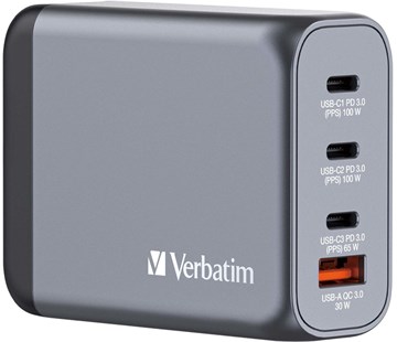 Napájecí GaN adaptér, 100 W; 3x USB-C PD 100/65 W; 1x USB-A QC 3.0; skládací americké hroty + vyměnitelné EU a UK zástrčky; formáty vstupní zástrčky: US (Typ A) / EU (Typ C) / Velká Británie (Typ G); ohnivzdorný materiál; čtyři bezpečnostní ochranné systémy pro zajištění bezpečnosti při nabíjení