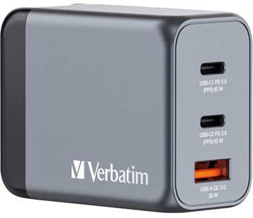 Napájecí GaN adaptér, 65 W; 2x USB-C PD 65 W; 1x USB-A QC 3.0; skládací americké hroty + vyměnitelné EU a UK zástrčky; formáty vstupní zástrčky: US (Typ A) / EU (Typ C) / Velká Británie (Typ G); ohnivzdorný materiál; čtyři bezpečnostní ochranné systémy pro zajištění bezpečnosti při nabíjení