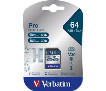 Popis a parametry Verbatim SDXC 64GB paměťová karta PRO UHS-I (U3) (90MB/s), V30, Class 10