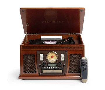 gramofon • integrované reproduktory • Bluetooth • 3 rychlosti (33 1/3, 45 a 78 RPM) • FM rádio • kazetový přehrávač • CD přehrávač • AUX vstup • RCA výstup • vstup pro USB flash disk • lze připojit sluchátka • dřevěné provedení • retro design • dálkový ovladač
