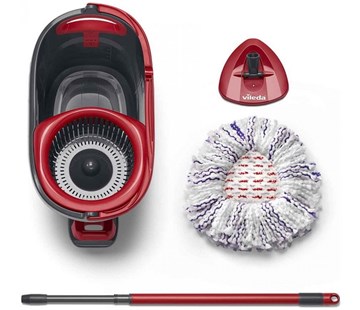 Set obsahující třásňový mop a kbelík se šlapacím pedálem, mop z mikrovlákna, jedinečný mycí návlek kombinuje tři druhy třásní: bílé: 100 % Microfibre pro snadný úklid každodenní špíny se skvělou absorpční schopností, červené a šedé: vyrobené ze speciálního abrazivního m