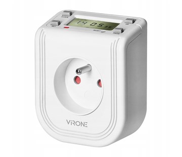Zásuvka s elektronickým časovačem;Napájení:230 V~,50 Hz;Typ zásuvky:French(typ E), 2P+Z; Stup.ochrany: IP20; Proud:16 A;Max.zatížení: 3680 W;Zabudovaná baterie;16 programů;Min.doba zapnutí:1 min;Max.nastavení času: 168 h;Max.nastavení dnů:7;Horní LCD displej;fce"RANDOM"-ideální proti nezvaným hostům