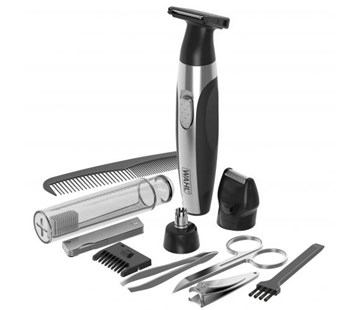 bateriový provoz, počet zastřihovacích hlav 3, nastavitelný nástavec (2, 4, 6 a 8 mm), materiál čepele nerez ocel, omyvatelný, praktické cestovní pouzdro, nůžky na nehty, kleštičky na nehty, hřeben, kapesní nožík, pinzeta, čisticí kartáček, zubní kartáček