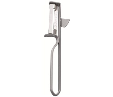 Škrabka na brambory a zeleninu s otočnou čepelí, s ostřeným hrotem pro vykrajování poškozených míst.materiál: lakovaný kov, čepel z nerezové oceli