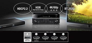 Tento AV receiver od Yamahy využívá technologii HDMI. Budete tak mít možnost přenášet jediným kabelem zároveň obraz i zvuk, aniž by došlo k jakékoliv komprimaci či znehodnocení audiovizuálního obsahu. Přístroj disponuje čtyřmi vstupy a jedním výstupem pro HDMI kabel.