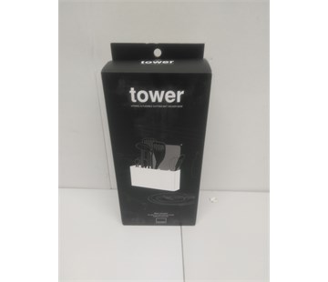 stojánek na kuchyňské nástroje různých velikostí a malé prkénko (do tloušťky 6 mm, velikost 25 cm), vyrobeno z lakovaného kovu a ABS plastu, 14,3 x 30 x 6,8 cm (VxŠxH)