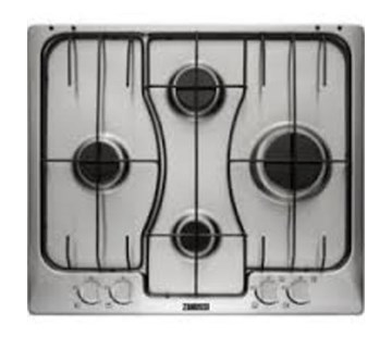4 hořáky, termoelektrické zabezpečení, automatické zapalování, 2 smaltované podpěry, ovládání vpředu, nerez
