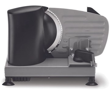 Kráječ potravin, výkon 150W, Rozsah řezu: 0 - 15 mm; Průměr nerezové čepele: 170 mm; Vyjímatelná deska na krájené potraviny; Bezpečnostní zámek, , Kvalitní nerez v kombinaci s odolným plastem, velmi snadno lze celý rozebrat a vyčistit