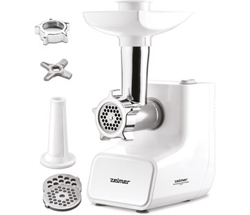 Vysoce účinný motor max 1500W - Vypínač s funkcí zpětného chodu -Kovová mlecí komora pro delší výdrž - Jednostranná čepel - 2 kg/min - 2 nástavce na mletí z nerezové oceli - Adaptér na klobásy - Pěchovač -Ochrana proti poškození motoru
